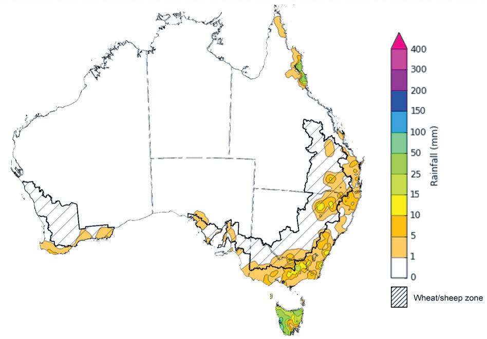Across most cropping regions, minimal rainfall totals of up to 10 millimetres are expected. These falls are not expected to have much beneft to crops and pastures as they are