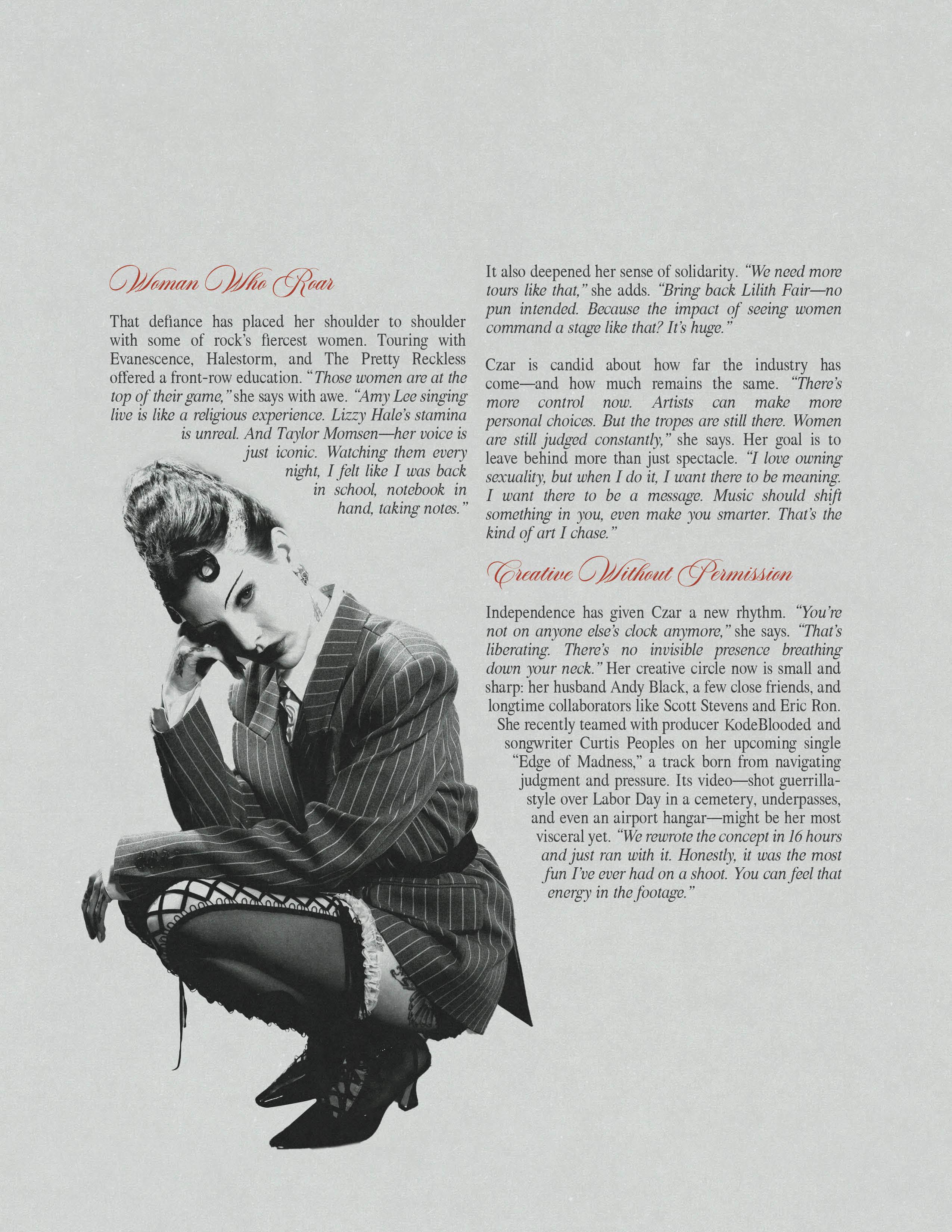 When Lilith Czar reemerged earlier this year with “POPSICLE,” her first single as an independent artist, the move felt like a deliberate rupture. Rather than chasing the algorithm with a high-tempo anthem, she chose a mid-tempo, haunting track that cuts deep with its vocal delivery and lyrical bite. “It’s not your typical comeback banger,” she says. “But I wanted something that punches you right in the face from the first second. Something you can’t ignore.” For Czar, this new era is about more than sound. It’s about reclaiming the narrative.