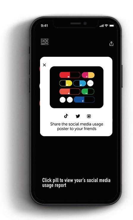 The Social Media Usage Report encourages users to be more aware of their relationship with social media. In just a few simple steps, data reports are generated in interactive and exciting animated formats. Moreover, unlike complex social media applications on the market that are user-specific, Pill offers attention-enhancing tips and sharing features.