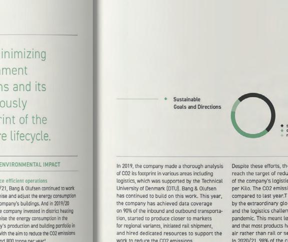 The goal of this project is to provide an exciting solution to the chal lenge of redesigning Bang & Olufsen’s CSR. By presenting information visually through data visualization, photos, typography, and color.