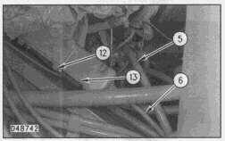 7. Remove bolts and washers (12) from cover (13) on the control box and disconnect clutch cable connection (6).