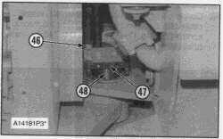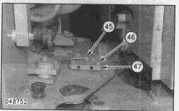 56. Connect foot throttle control cable (30). Install cover (32), bolts and washers (31) to the throttle control housing. Refer to photo D48743 for clarity of installing cable.