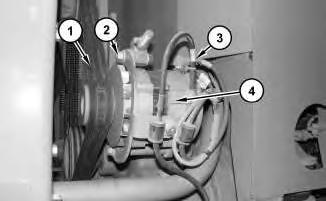 1. Position alternator (4). Install belts (1). Install bolts (2). Install wire harness (3). Refer to Testing and Adjusting, "Belt Tightning Chart" for the correct belt (1) adjustment .