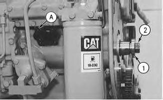 5. To find the top center compression stroke for the No. 1 piston, use Tool (A) in order to turn the flywheel clockwise for approximately 30 degrees. This procedure should be used to remove all of the end play from the timing gears.
