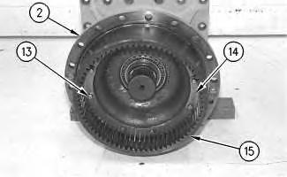 24. Install bolts (13), the washers, and plates (14) in order to hold ring gear (15) to housing assembly (2). Tighten locking bolts (13) to a torque of 50 ± 10 N·m (37 ± 7 lb ft).