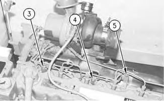 4. Install the brackets and three bolts (3), (4) and (5) that hold the fuel injection lines in position.