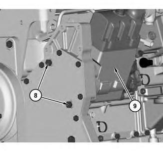 3. Support unit injector hydraulic pump (8) and remove bolts (9) .
