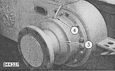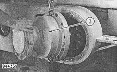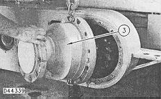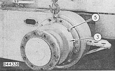 5. Remove brake and wheel spindle housing (3) from the tandem housing. The weight of brake and wheel spindle housing (3) is 159 kg (350 lb.)
