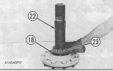 4. Heat bearing cone (23), in oil, to a maximum temperature of 135° C (275° F). Install bearing cone (23) on the shaft of wheel spindle (22).