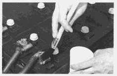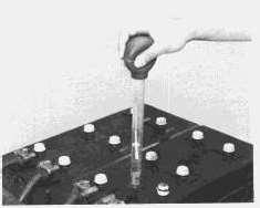 Thegeneralconditionofabatterycanbe determinedbymeasuringthespecificgravityoftheelectrolytesolutionandadjustingthereadingto 80°F(27°C).Iftheelectrolytelevelistoolowtoallowtakingahydrometerreading,addmake-up watertothecorrectlevelandthenchargethebattery2to4hoursbeforetakingareading.