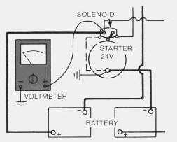 Astartingmotorsolenoidthatwillnotoperatemaynotbereceivingbatterycurrent.Attachonelead ofthevoltmetertothesolenoidbatterycableconnection.Groundtheotherlead.Novoltmeterreading indicatesafaultycircuitfromthebattery.Avoltmeterreadingindicatesfurthertestingisnecessary.
