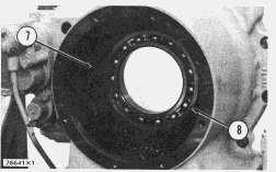 6. Put the carrier (7) in position in torque converter housing. Install two 3/8"-16NC x 1 in. bolts to temporarily hold the carrier (7) in place.