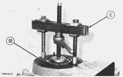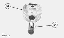 41. Install three 3/8"-16NC forcing screws (54) and loosen retainer (53) from housing. Remove the retainer and shims. Put identification on shims for use during assembly.