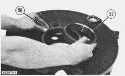 68. Put the seal rings in the center of their grooves. Put the piston (61) in position on carrier, and softly push the piston into place.