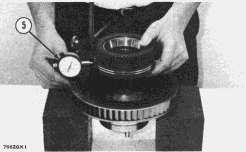 f) Check the clearance at three more locations 90° apart. Take the maximum clearance reading and divide it by two to get the running clearance. The running clearance (N) between turbine and stator must be .006 to .009 in. (0.15 to 0.22 mm).