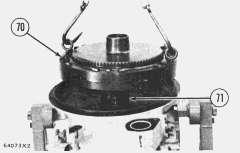 72. Fasten a hoist and put the input flange (68) in position on carrier (69). Make sure the springs are in correct position in the piston and in the input flange.