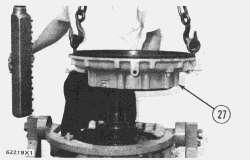 22. Fasten a hoist and remove the torque divider housing (27). Weight of housing is 155 lb. (70 kg).