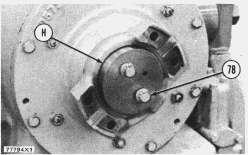 a) Install tool (H) without shims and O-ring seal. Install and tighten bolts (78) to 80 ± 5 lb.ft. (11.1 ± 0.7 mkg).