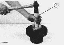 8. Turn the housing over on stand (A) with input end up as shown. Put turbine (2) in position in housing. Push the turbine into bearing (8) with a soft hammer.