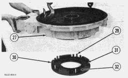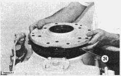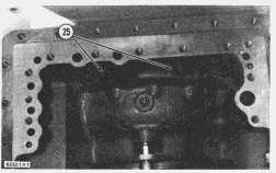 25. Install the eight bolts and six nuts that hold the retainer (23) in place. Tighten the eight bolts to 36 ± 2 lb.ft. (5.0 ± 0.28 mkg).