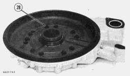 20. Fasten a hoist and remove the No. 2 clutch and torque divider housing (27). Weight of housing and clutch is 190 lb. (86 kg).