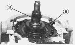 39. Remove bearing assembly (50) and carrier (48) from output shaft. Remove the seal rings (49) from carrier.