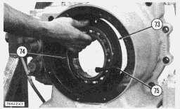 57. Remove the bearing (74) and retaining ring from carrier (73).