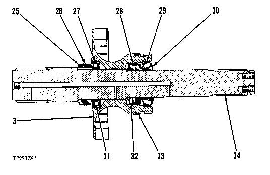Make sure carriers (25) and (32) are installed against shoulders of shaft, and bearing assembly (31) and bearing cone (30) are against the carriers.