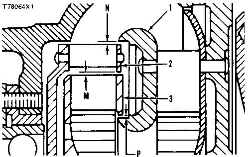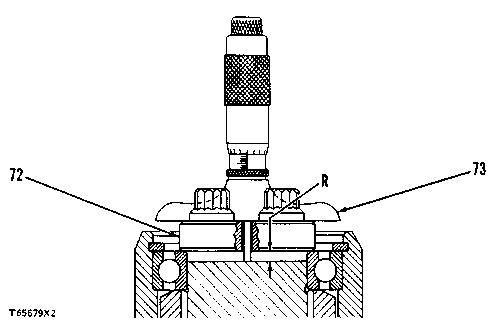 e) Install retainer (75) with shims (76) equal in thickness to dimension (R). Do not install shims of thickness more than .002 in. (0.05 mm) more than dimension (R).
