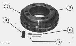 16. Put the cam and cage assembly of the one-way clutch in position in housing. Make sure the cage assembly is in correct position on the dowels (17) in turbine.