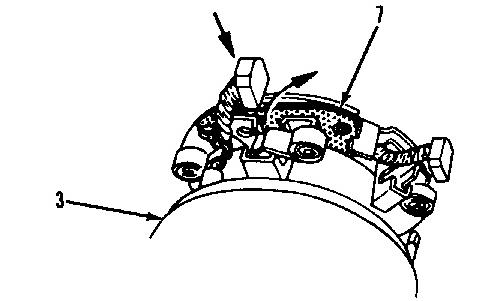 8. Put the brush holder (7) in position over the commutator. Put the positive brushes, which are connected to motor case (3) into the positive holders. The positive holder is separated from the plate by an insulator. Put the negative brushes into the negative uninsulated holders. The negative brushes are connected to brush holder (7) .