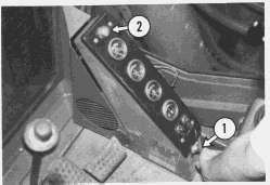 1.Theservicedisconnectmustbeon.Turntheoperator'sstationdisconnectswitch(1)on.The MasterWarningLight(2)shouldgoon.