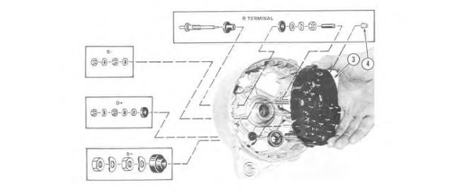 3. Install the insulators for terminal "B+" and terminal "D+".