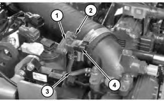 1. Disconnect harnessassembly (4). Remove hose (3). Remove bolts(2) to remove boost pressure sensor (1).