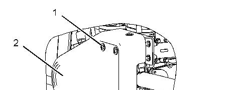 3. Install cover (2) and install screws (1) . Tighten screws (1) to a torque of 6 ± 1 N·m (53 ± 9 lb in).