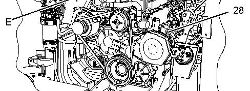 1. Attach Tooling (C) , Tooling (D) , Tooling (E) , and a suitable lifting device to engine (28) . The approximate weight of engine (28) is 320 kg (700 lb). Remove both brackets (31) that are used for mounting the engine.
