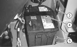 1. Raise the cover on the negative terminal of the battery. Disconnect negative terminal (2) of the battery. Place a protective cover on the negative terminal of the battery.