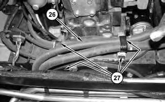 7. Position hoses(26) . Install all clamps (27) that secure hoses (26) to the engine.