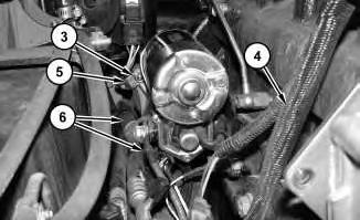 15. Connect cable assembly (5) and install nut (3) . Connect harness assembly (4) and cable assemblies(6) . Install all mounting hardware.