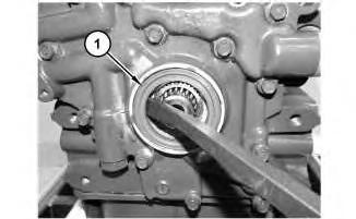 1. Use a suitable pry bar to remove crankshaft front seal (1) .