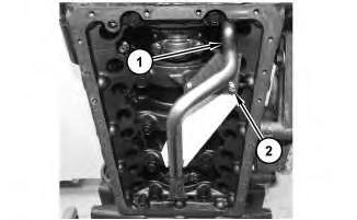 10. Position engine oil screen (1) and install the O-ring seal and bolt (2).