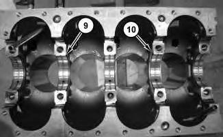 5. Install the upper thrust bearing (10) and the upper main bearings (9).