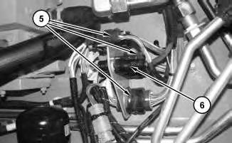 3. Disconnect harness assembly (3) and hose assembly (6). Remove bolts (4) and accumulator manifold and solenoid and mounting (5).