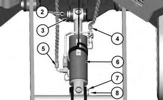 Attach a suitable lifting device to blade cylinder (6). Disconnect hose assemblies (4) and (5) .