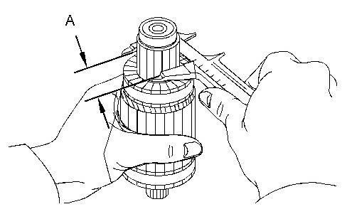 Measure the length of the brushes (25). If the measured value is less than the limit, replace both the brush holder assembly and the brush assembly with new ones.