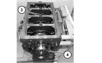 7. Install crankshaft (4). Install three bolts (3). Tighten bolts (3) to a torque of 69 to 73 N·m (51 to 54 lb ft).