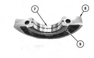 5. Remove lower half of crankshaft main bearing case (8), crankshaft main bearing (7), and thrust bearing (9).