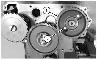 1. Ensure that Timing Marks (Y) on the idler gear and the camshaft gear are aligned. Refer to illustration 1.