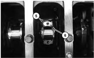 2. Install upper bearing shell (6) into connecting rod (5) . Ensure that the locating tab for the upper bearing shell is correctly seated in the slot in connecting rod (5) .