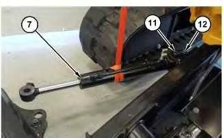 5. Remove bolt (5) pin (6) and rotate cylinder (7) towards the right track of the machine.